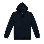 Pullover hood, drop shoulder, kangaroo pocket, self-fabric lined hood, no drawcord, garment dyed, sleeve cuff ribbing