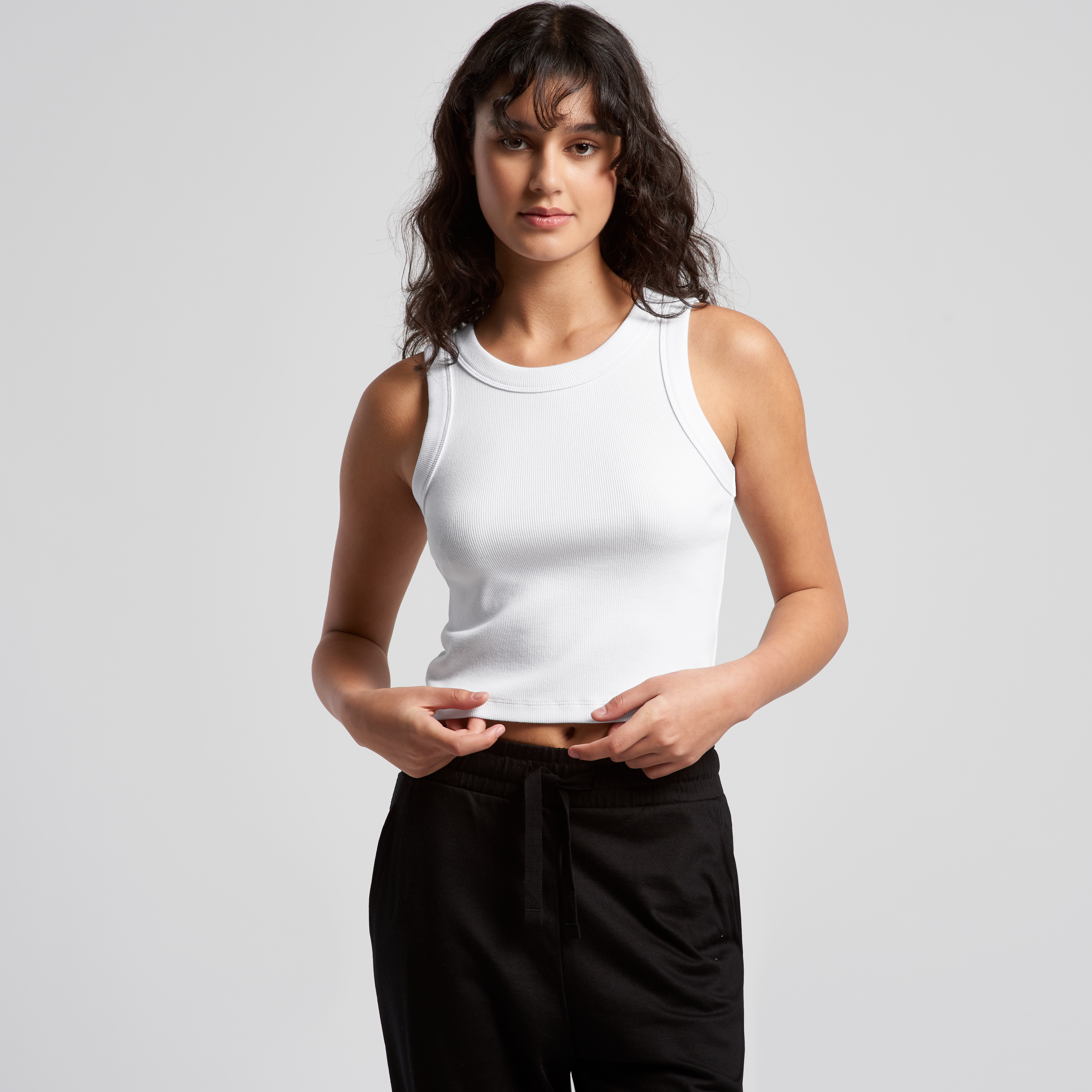 Self fabric wide binding, 2x2 rib, double needle hem, crop length